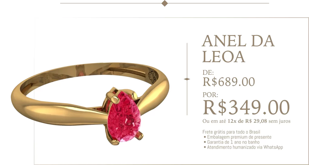 Inspirado na figura da leoa — símbolo de elegância, liderança e magnetismo — esse anel foi criado para mulheres que não aceitam menos do que merecem.