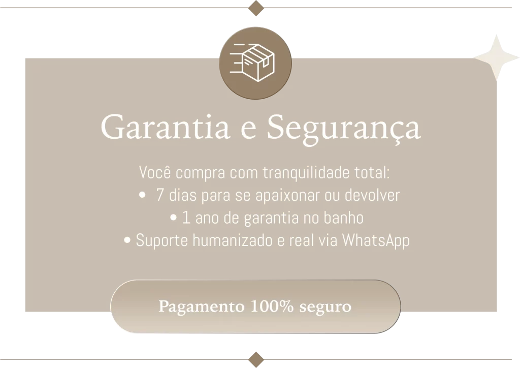 Você tem 7 dias para devolução sem complicações.E ainda conta com 1 ano de garantia no banho.